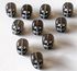 Approximately 13mm black glass skull beads. These beads are drilled top to bottom for stringing and have an approximately 1.2mm hole. PRICE PER BEAD.