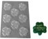 This plastic craft mold can be used to form chocolate, wax, soap and more. The mold has seven wells. The finished castings - a Shamrock with the raised words HAPPY ST PATRICKS DAY - measure about 2" x 2" x 1/8" deep.