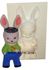 This plastic plaster of paris casting mold produces approximately 6.25" tall and 2.5" wide castings of a rabbit holding a carrot and wearing a Yarmulke.